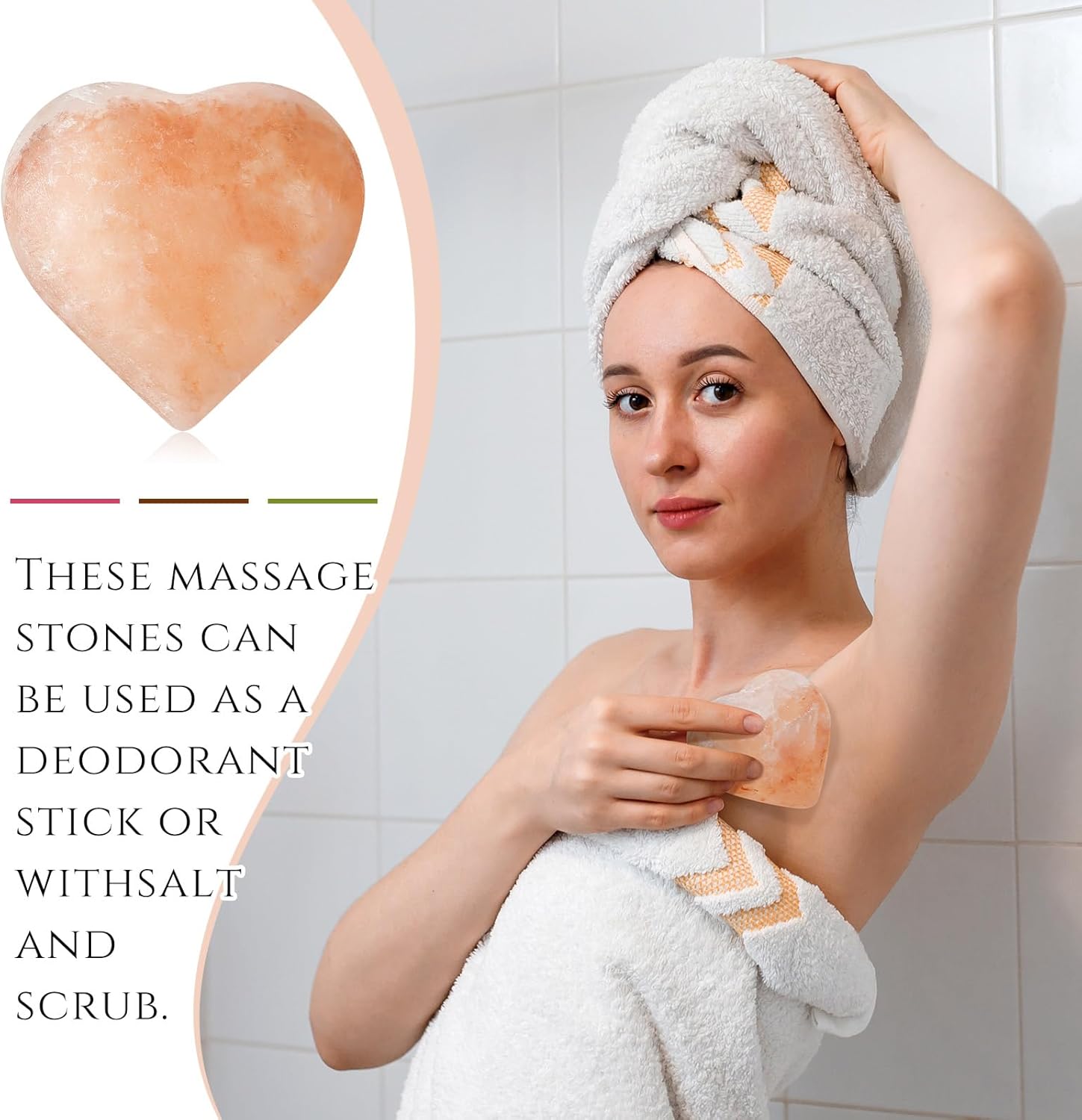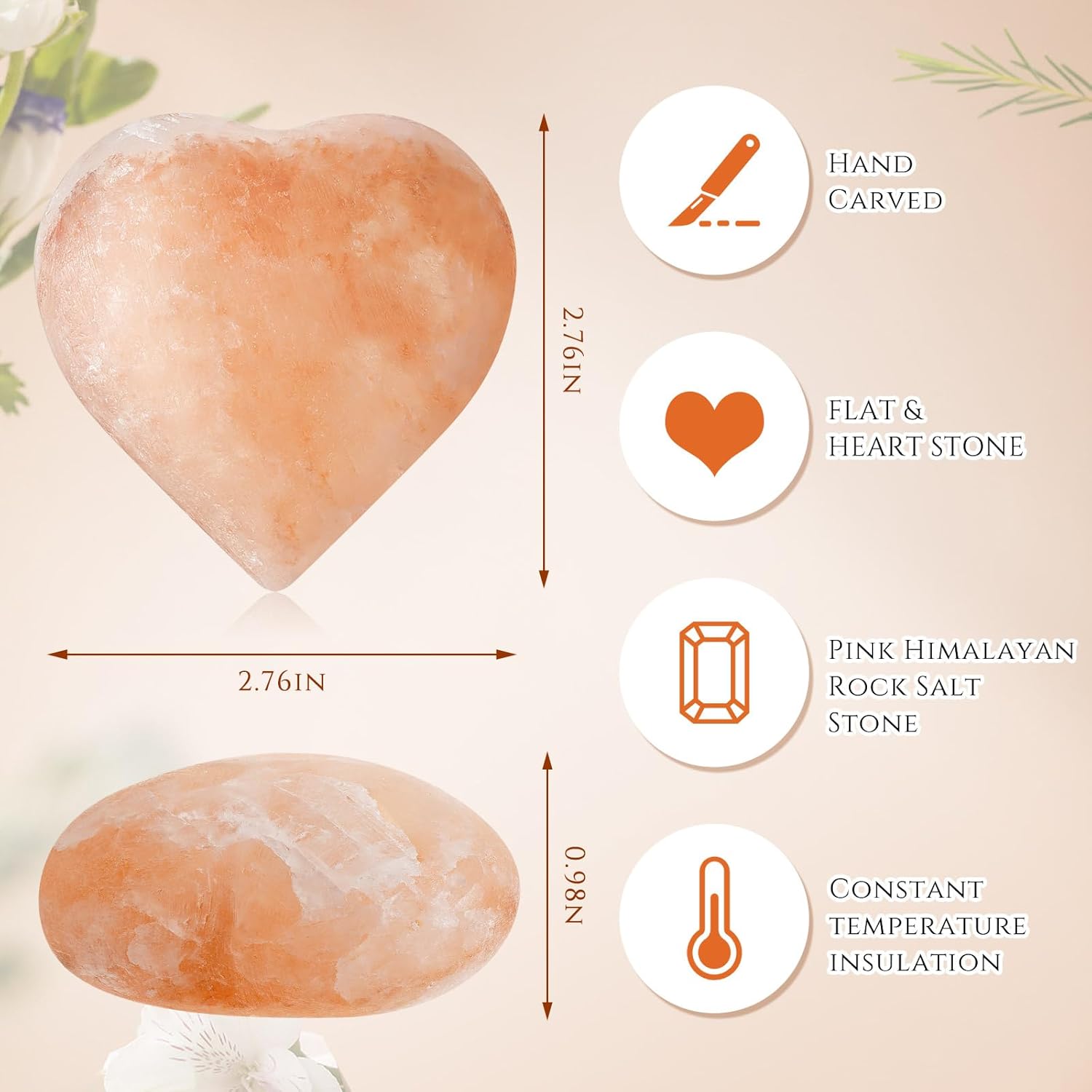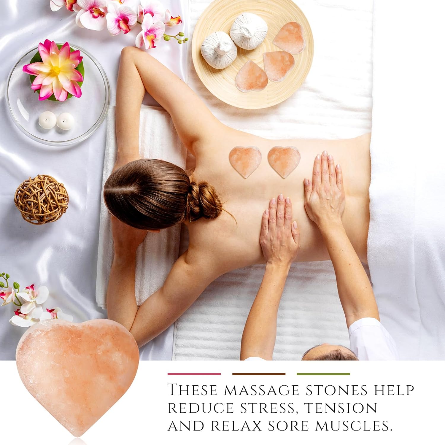 Suitable Size: each heart shape massage stone measures about 3.15 x 0.98 x 3.15 inches/ 8 x 8 x 2.5 cm, designed to fit comfortably in your hand for precise control and targeting; Ideal for common massage areas – neck, back, shoulders, arms and legs; This size offers the versatility needed for full-body massages, ensuring you reach every sore spot with ease while enjoying the ancient returns of Himalayan salt