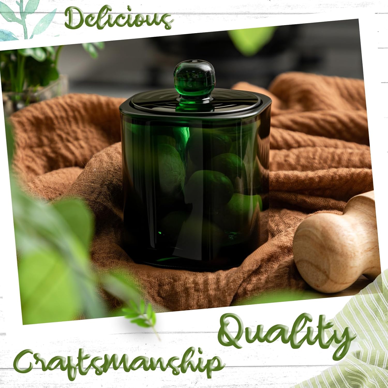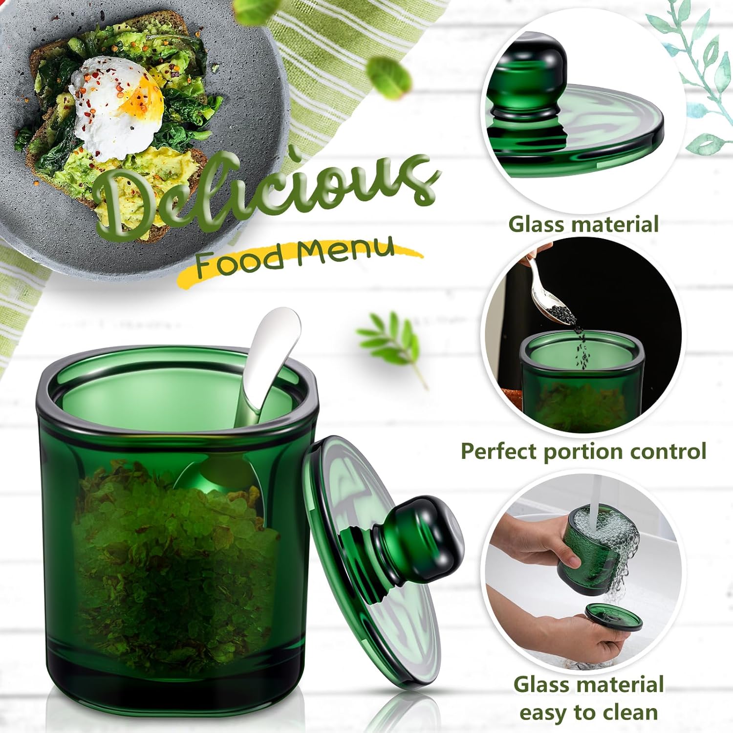 This small glass containers crafted from thick pressed glass and stainless steel, this green and silver salt cellar is not just durable but also adds a touch of elegance to your kitchen countertop. The robust materials ensure longevity and style.