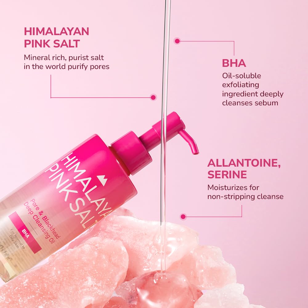 Enriched with Himalayan Pink Salt: Infused with precious Himalayan Pink Salt, known for its purity and rich mineral content, this oil cleanser deeply purifies pores while promoting healthy, glowing skin