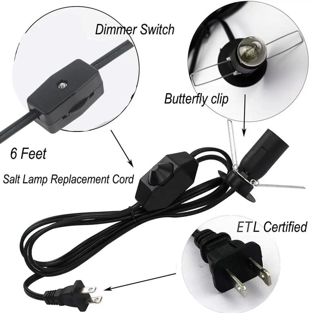 6-foot-long Original Cord comes with a handy dimmer switch, which can help you adjust the brightness of the lamp. Specifically designed for salt lamps to hold any 15Watt E12 light bulbs.
