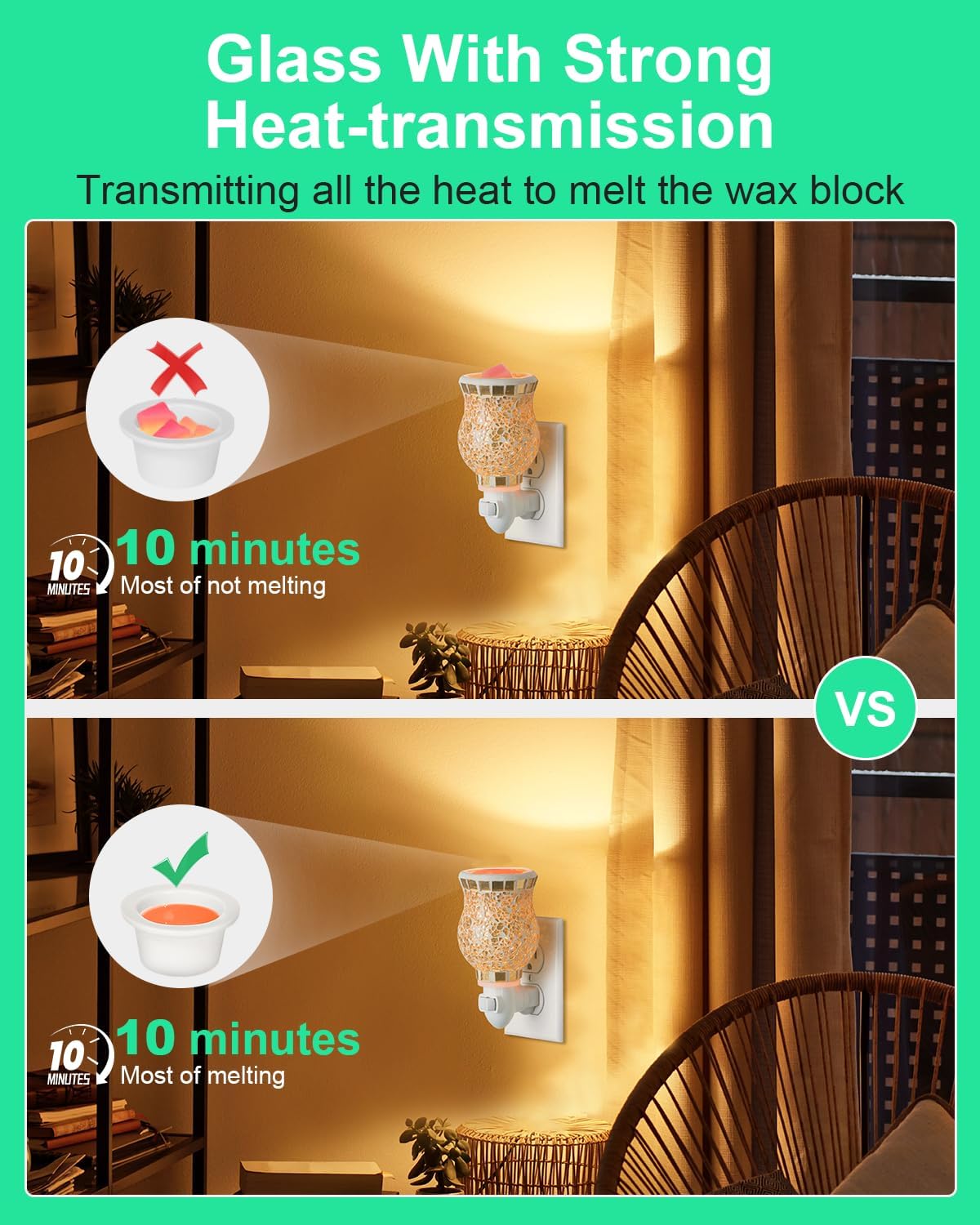 Warm White Eye Protect Glow: This 15w light bulb for plug-in wax warmer illuminates warm white light to creates a enjoyable and romantic atmosphere. whilte filling the room with a wonderful aroma with wax melts at the same time. setting a tranquil ambiance for any room that also promotes sleep.