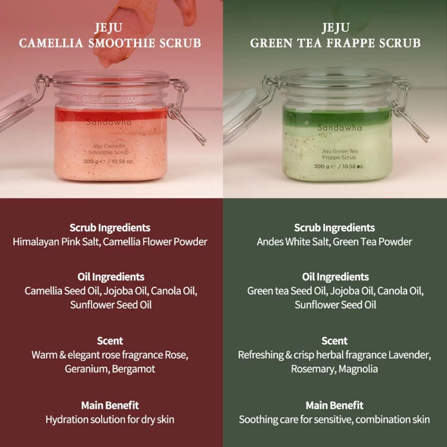 Infused with nutrient-rich Jeju camellia oil and green tea, known for their antioxidant and soothing properties. Chemical-free and made with 100% natural exfoliants, perfect for sensitive skin.