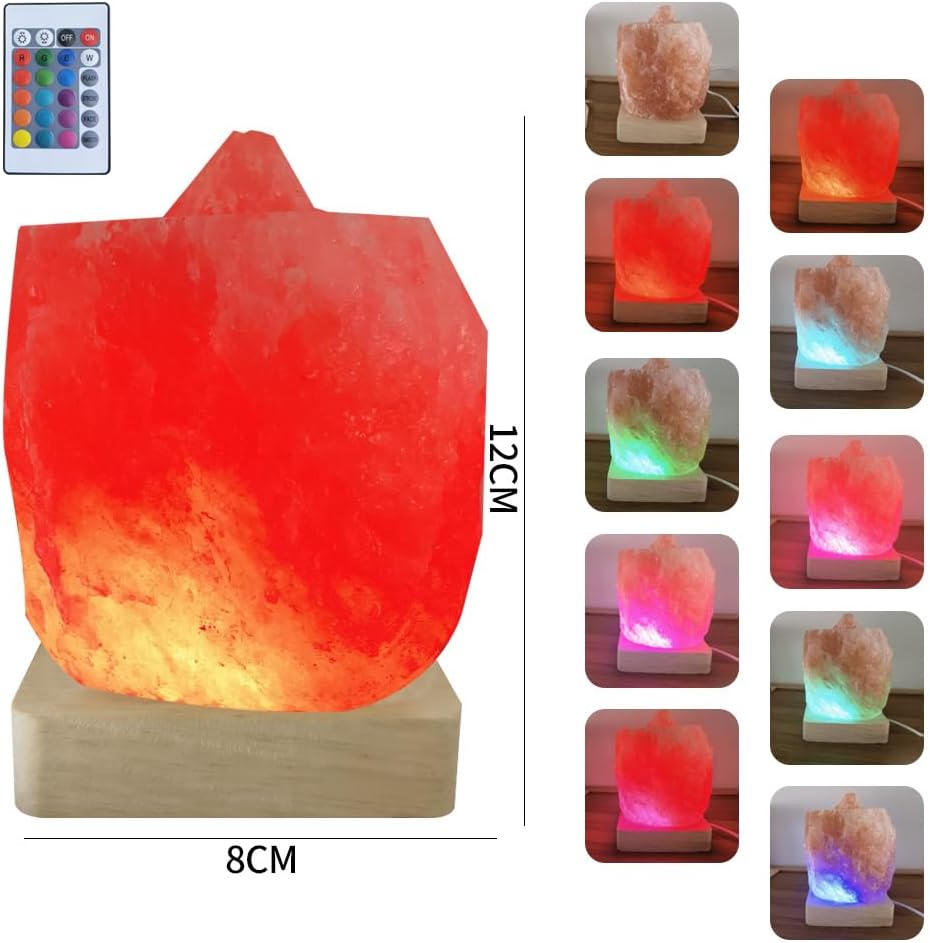 USB Colour gradient Himalayan salt lamp,Solid wood based atmosphere decoration natural shape salt lamp with remote control, Natural crystal stone bedside night light, handmade crafts.